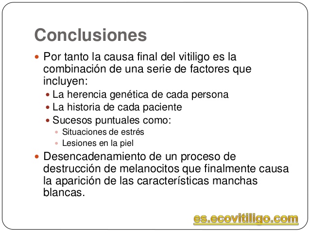 El vitíligo es una enfermedad de la piel que no acarrea consecuencias sobre la salud de los pacientes por lo que la abstención terapéutica es una opción aceptable. Sin embargo, en algunos casos puede existir afectación de la calidad de vida de los pacientes y por lo tanto deseo de tratamiento.